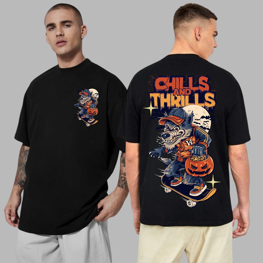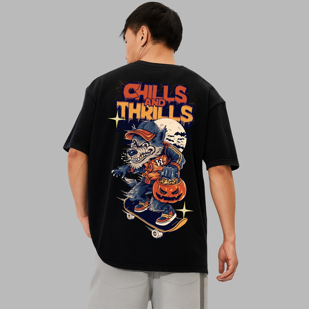 Chills and Thrills Oversized T-Shirt - Relaxed fit | Graphic Tee | Spooky Skateboard T-Shirt