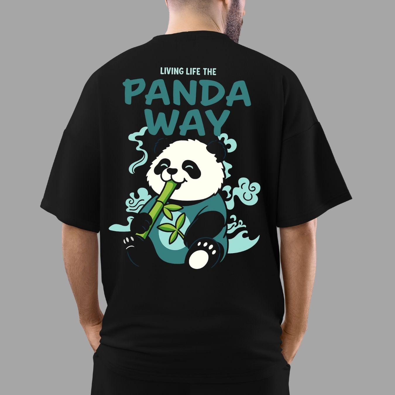 Panda Way Printed Oversized T-Shirt – Cute Bamboo Eating Panda Graphic | Unisex 100% Cotton Relaxed Fit Tee for Animal & Chill Vibes Lovers