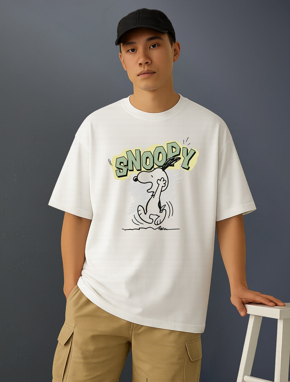 "Snoody Cartoon" Dog Graphic T-Shirt – Funny Comic Style White Tee | Oversized Cotton T-Shirt